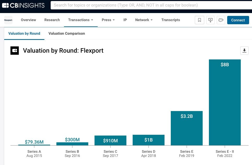 Flexport has raised substantial funding over several rounds, with notable increases in valuation.