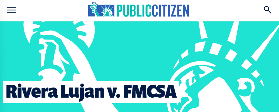 Public Citizen, American Federation of State, County and Municipal Employees (AFSCME), American Federation of Teachers (AFT), and two drivers filed Rivera Lujan v. FMCSA to block the emergency interim final rule that limits non-domiciled CDLs.