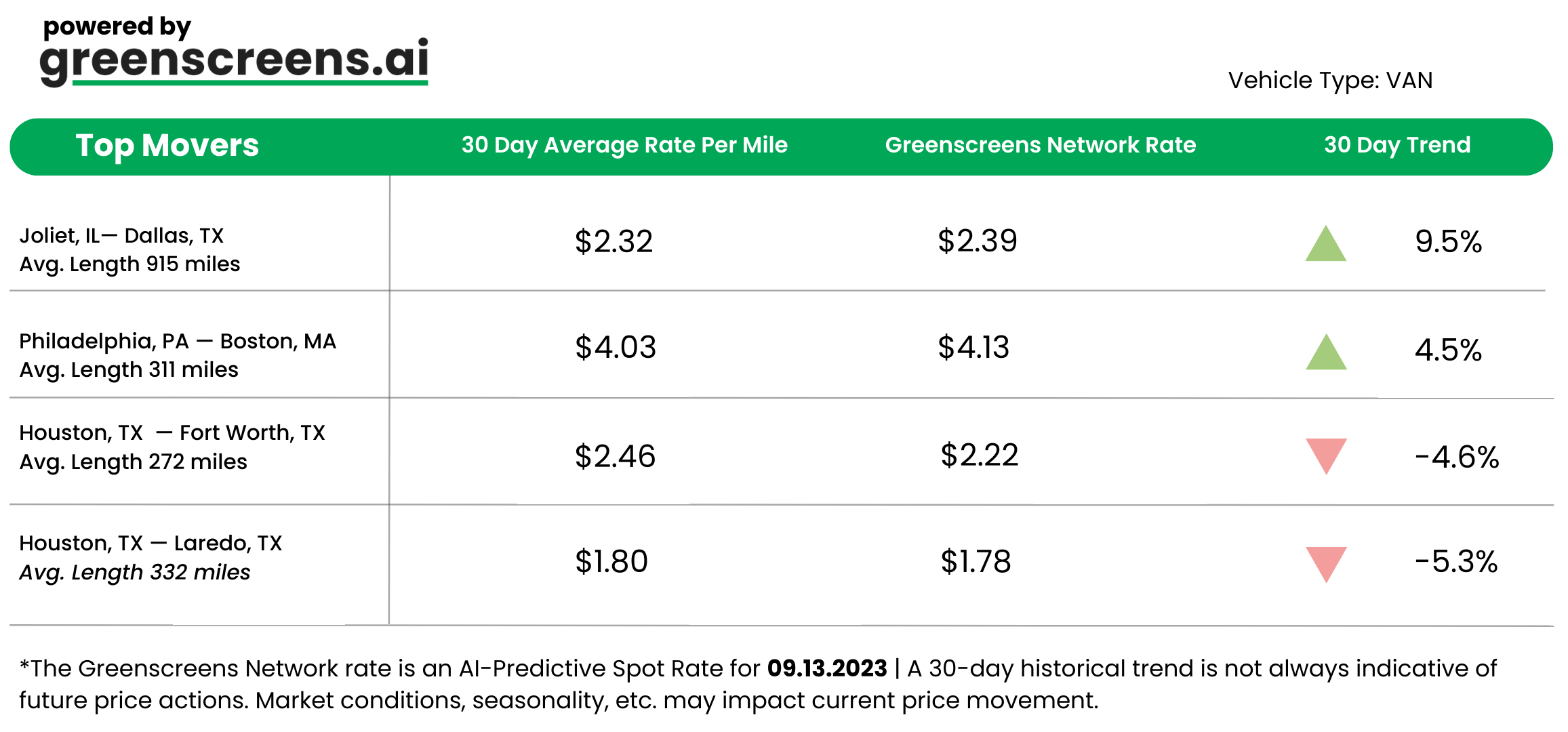 *Greenscreens.ai, forecasts real-time truckload buy prices that are suited to each freight brokerage's purchasing power using AI and machine learning. Its engine takes into account over 130 attributes and data points in each rate forecast.
