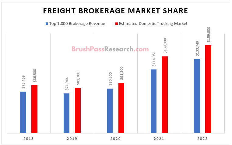 In a $160b freight brokerage industry, the cream truly rises to the top. While there are 30k active freight brokerages registered with the FMCSA, the top 3% commandingly generate 80% of the gross revenue, with the elite 20 representing a third of the entire market.