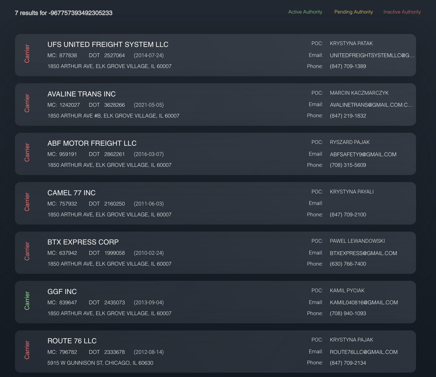 Additional MCs at 1850 Arthur Ave. Findings from CarrierOK have uncovered more Motor Carrier (MC) numbers linked to the now-infamous address in Elk Grove Village, IL. This location appears to be a hub for potentially fraudulent activities.