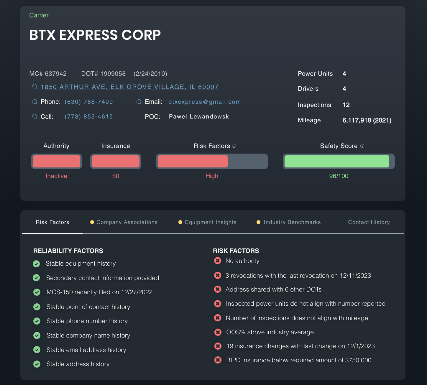 BTX Express and Steel Dragon Co Connection. BTX Express (MC637942), formerly based at the Arthur Ave address, has gone inactive. However, it may now be operating under Steel Dragon Co (MC369194), a company with a questionable reputation in the industry.