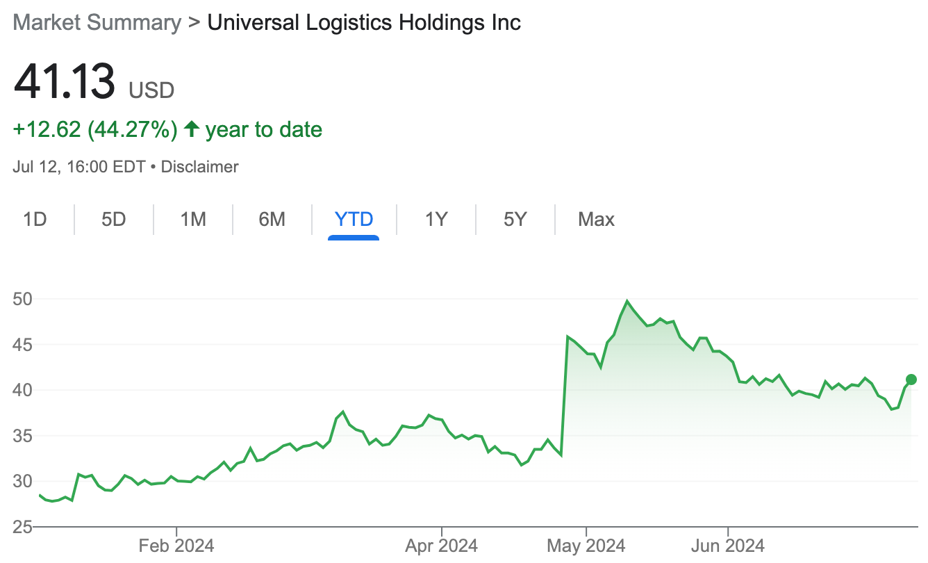 Universal Logistics' stock has risen 44% since the beginning of the year.