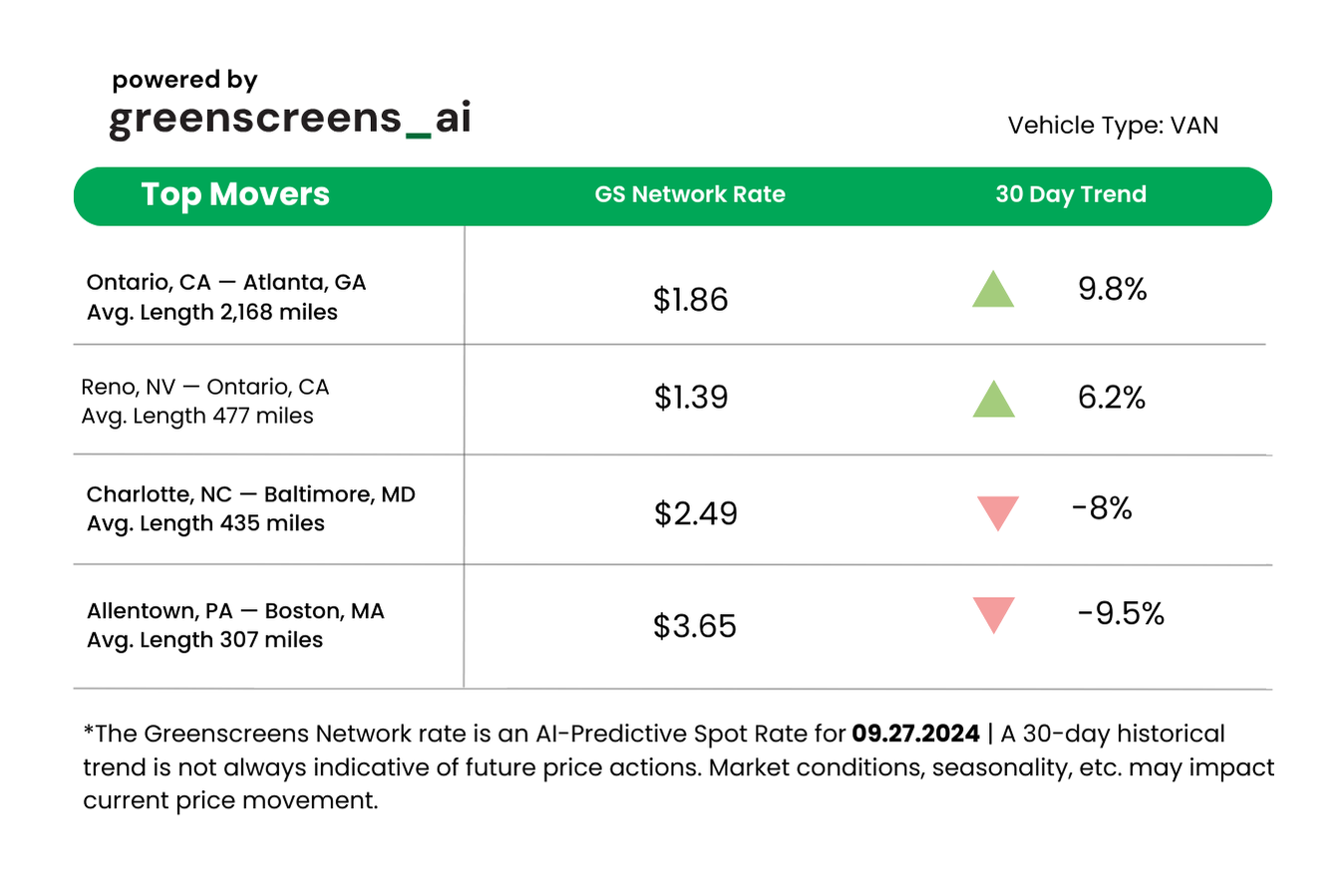 *Greenscreens.ai, forecasts real-time truckload buy prices that are suited to each freight brokerage's purchasing power using AI and machine learning. Its engine takes into account over 130 attributes and data points in each rate forecast.