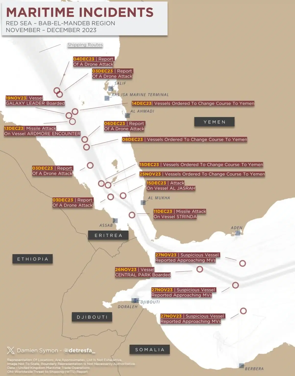 The Red Sea is a critical maritime route. There has been an alarming rise in attacks on container ships, particularly at the Bab-el-Mandab Strait.