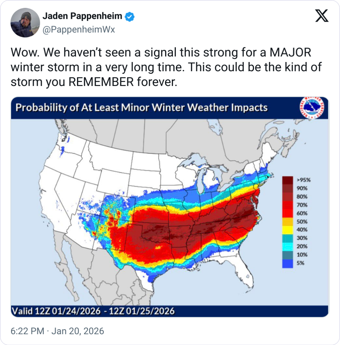 “As this winter storm approaches there is still a great amount of uncertainty in its path and expected impacts. From that perspective, impacts to the freight market long term are impossible to predict. However, we know there will be widespread areas of ice and snow, likely in areas not used to seeing that kind of winter precipitation.”