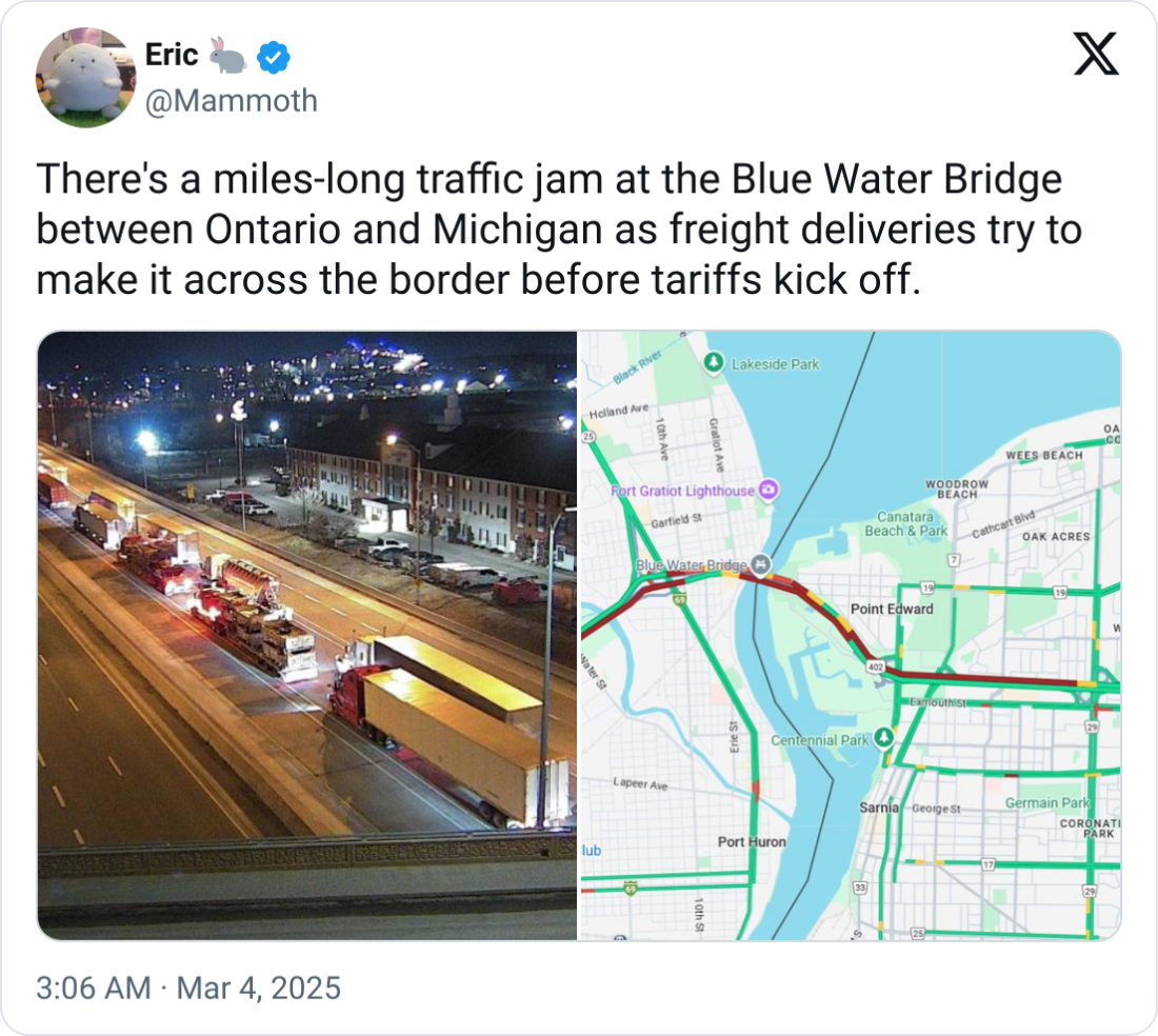 New U.S. tariffs of 25% on imports from Mexico and Canada officially took effect on Tuesday, March 4, 2025, causing significant drops in European auto stocks.