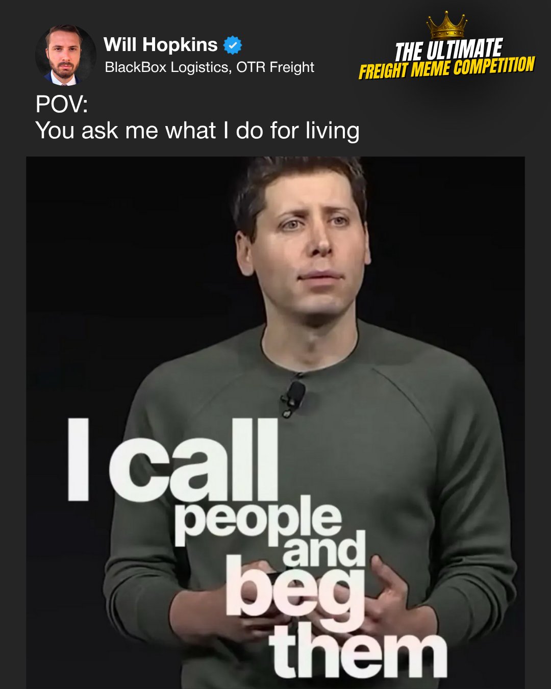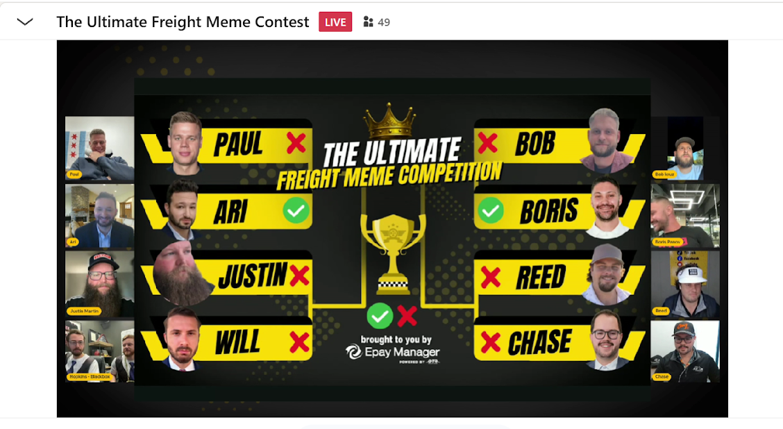 On Friday, we hosted FreightCaviar’s very first Ultimate Freight Meme Competition. The panel of judges consisted of Will Jenkins, CEO & Founder at Journey, Clayton Griffin, President at OTR Solutions, as well as Matt Silver, Co-Founder and CEO at Cargado.