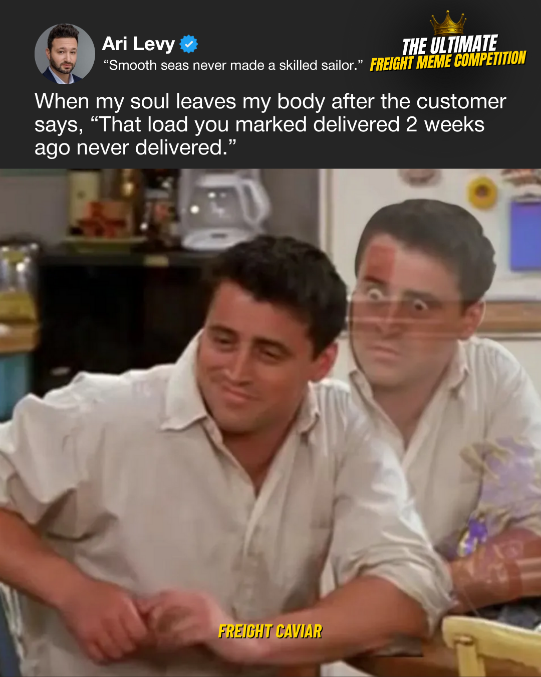 Ari: "When my soul leaves my body after the customer says, "That load you marked delivered 2 weeks ago never delivered."