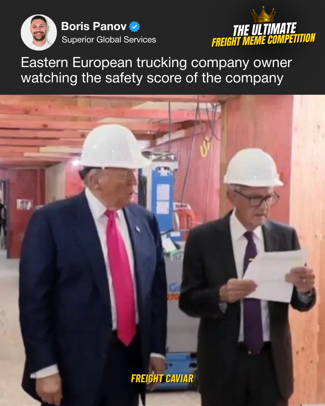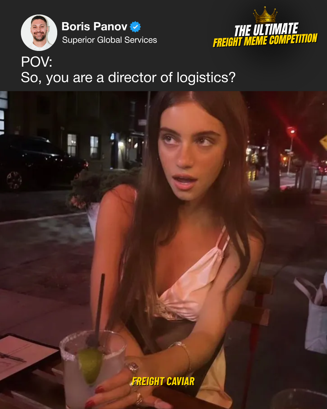 On Friday, we hosted FreightCaviar’s very first Ultimate Freight Meme Competition. The panel of judges consisted ofWill Jenkins, CEO & Founder at Journey, Clayton Griffin, President at OTR Solutions, as well asMatt Silver, Co-Founder and CEO at Cargado.