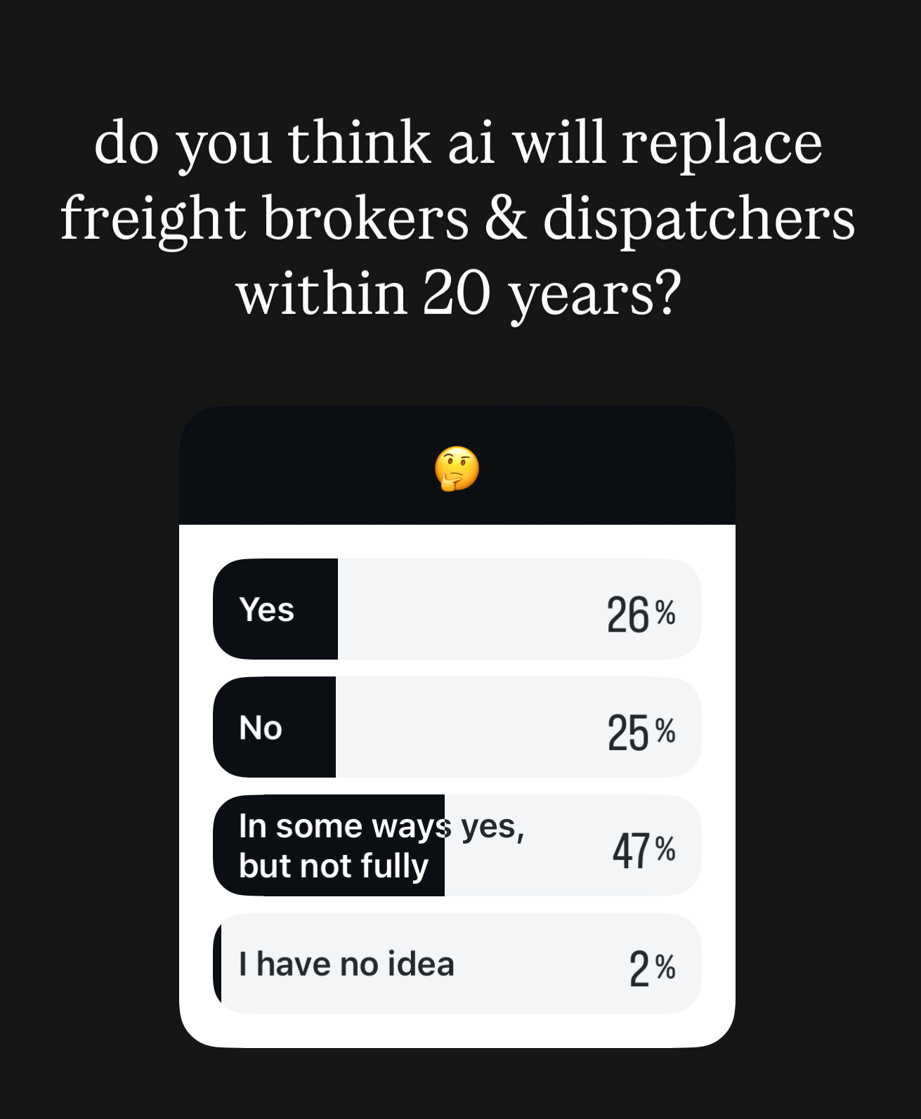 Earlier this week on our Instagram page, we asked a question about whether AI will replace freight brokers & dispatchers in the next 20 years?