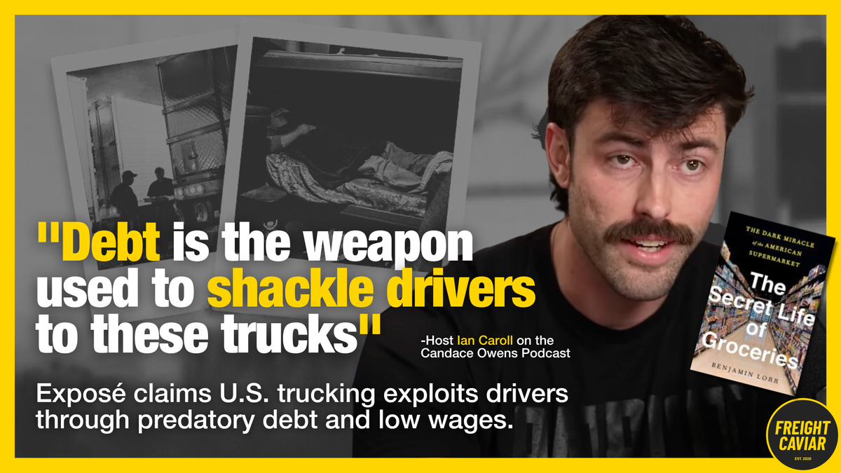 A viral video on Candace Owens’ podcast accuses the trucking industry of trapping drivers in debt through exploitative lease programs. Drawing on The Secret Life of Groceries, the video claims drivers net far less than promised and face harsh, unsustainable working conditions. Though coming from polarizing figures, the exposé raises real concerns about driver pay, turnover, and leasing practices. We dive deeper into this in this week’s most-clicked FreightCaviar feature.