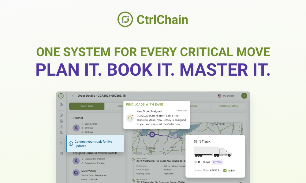 Every logistics team has that one must-have: tracking, booking, or rate management. CtrlChain TMS is built around what matters most: real-time tracking, seamless booking, and actionable insights – all in one platform.