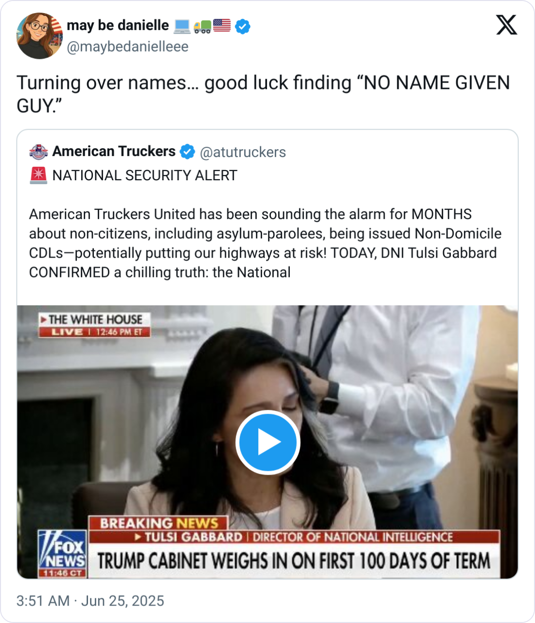 On X, American Truckers United voiced their displeasure over non-citizens, including asylum parolees, being issued Non-Domicile CDLs, potentially compromising highway safety.