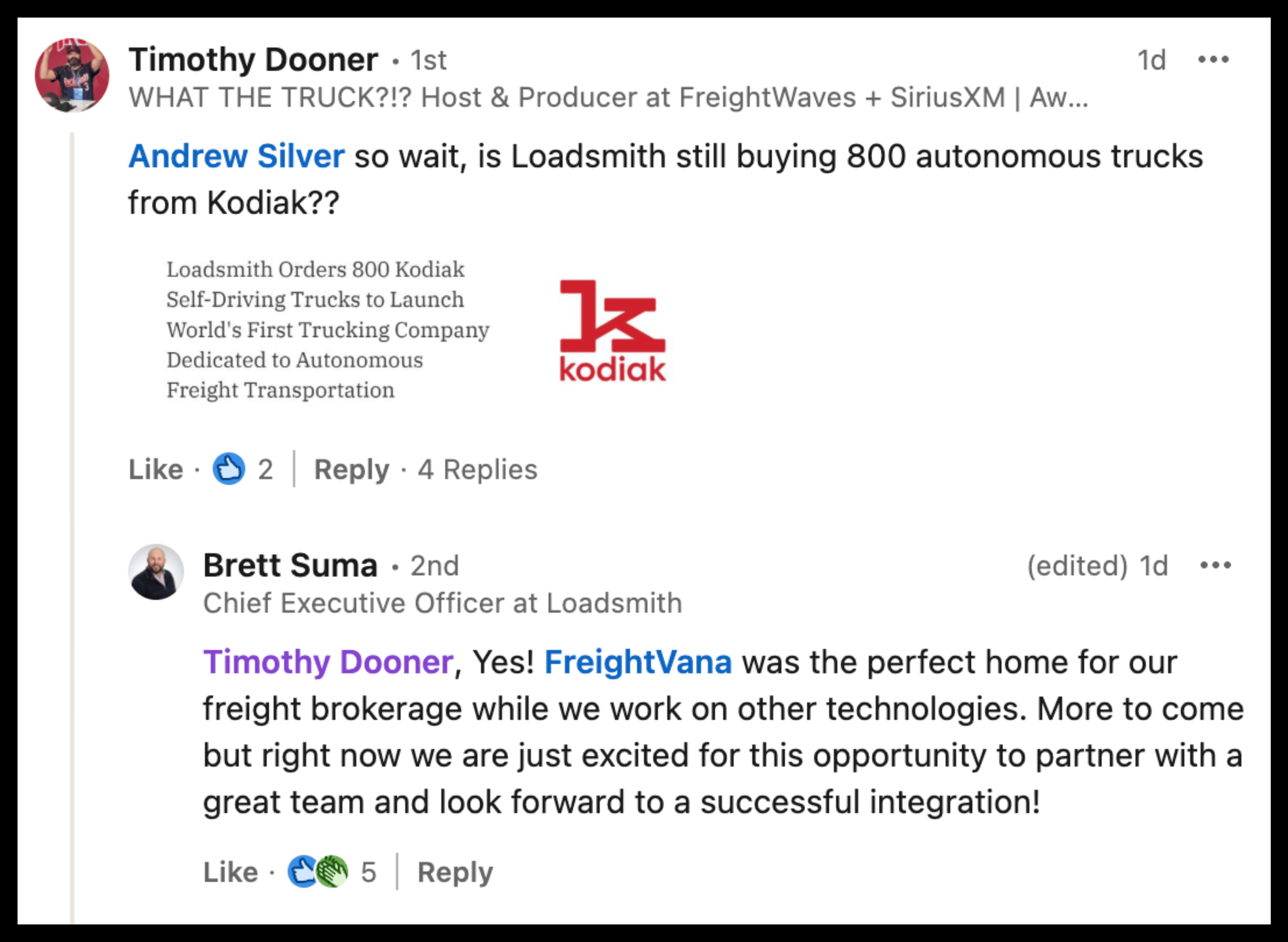 Loadsmith’s 2023 move to order 800 autonomous trucks from Kodiak Robotics showed its forward-thinking approach to automation. Now, as part of FreightVana, this tech-driven mindset could bring new opportunities to the power-only segment. Could autonomous trucks become part of FreightVana’s future?