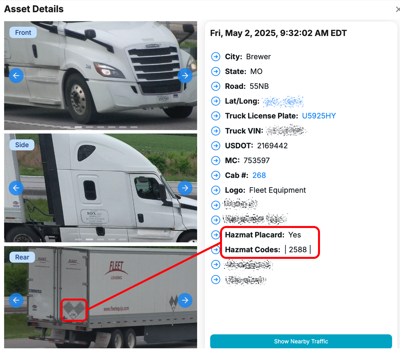 GenLogs bridges that gap by turning visibility into actionable data. Using its nationwide network of roadside cameras, the company detects hazmat placards and identifies the associated UN codes in real time. The same technology can recognize oversize and heavy-haul configurations, giving brokers verified insight into which carriers are actively running specialized equipment and where they’re operating.