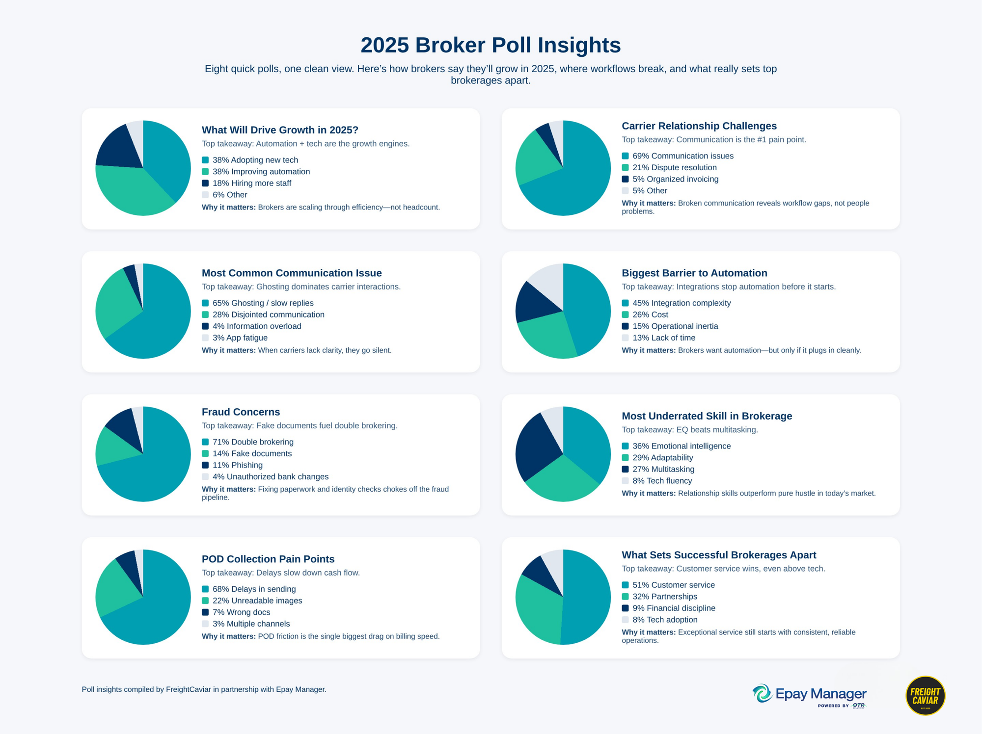 Where Epay fits: Epay’s automated invoicing and auditing workflows let brokers increase volume without increasing payroll, exactly what this poll reflects.