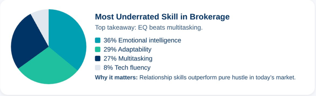 In August, 36% of brokers voted emotional intelligence as the industry’s most underrated skill, beating multitasking and even adaptability.