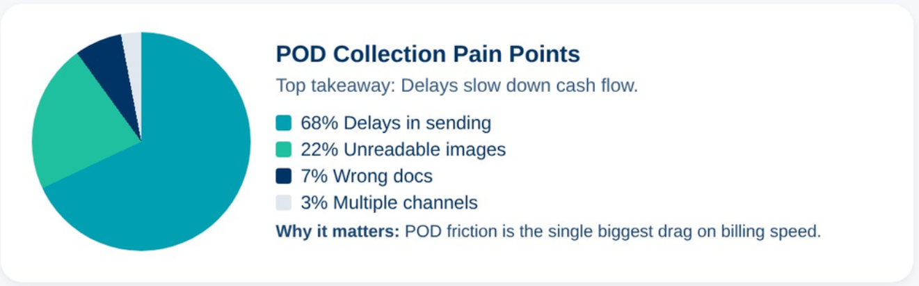 In the August poll, 68% of freight brokers listed delays in POD submission as their top frustration. Another 22% cited unreadable images.