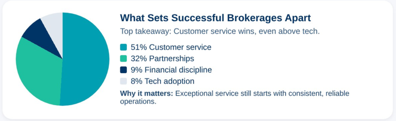 In September, 51% of brokers chose customer service as the distinguishing factor for successful brokerages. Only 8% chose technology adoption.
