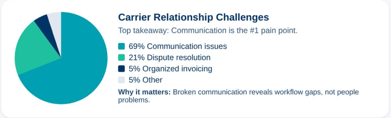 Across thousands of votes, FreightCaviar’s LinkedIn polls revealed the same themes again and again: broken communication, messy back-office operations, stalled automation, fraud headaches, and frustrated carrier relationships.