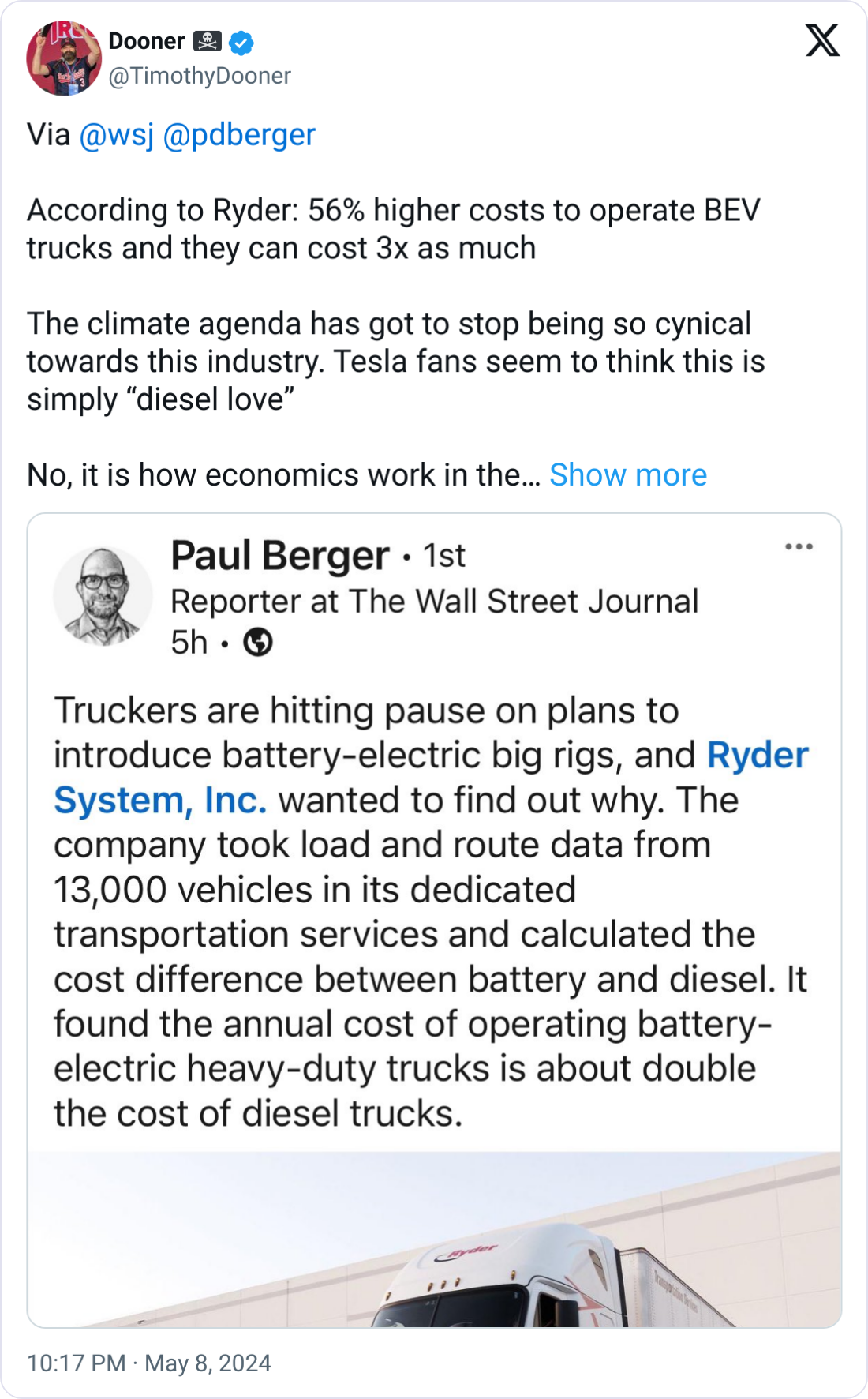 Ryder's analysis reveals significant operational cost differences deterring companies from adopting electric trucks.