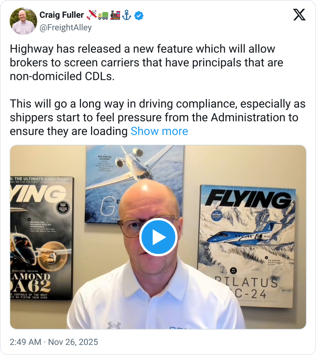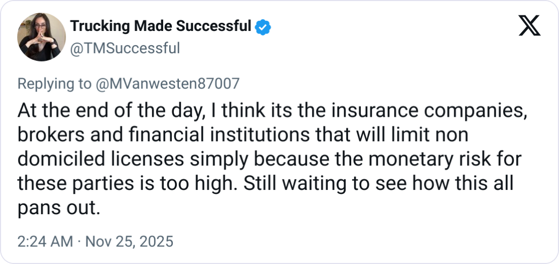 Highway says the rule is optional and overrideable, so it is not actually a ban. But in a market where brokers, insurers, and shippers are already jumpy about immigration enforcement, this can be seen as a new "do not load" switch.