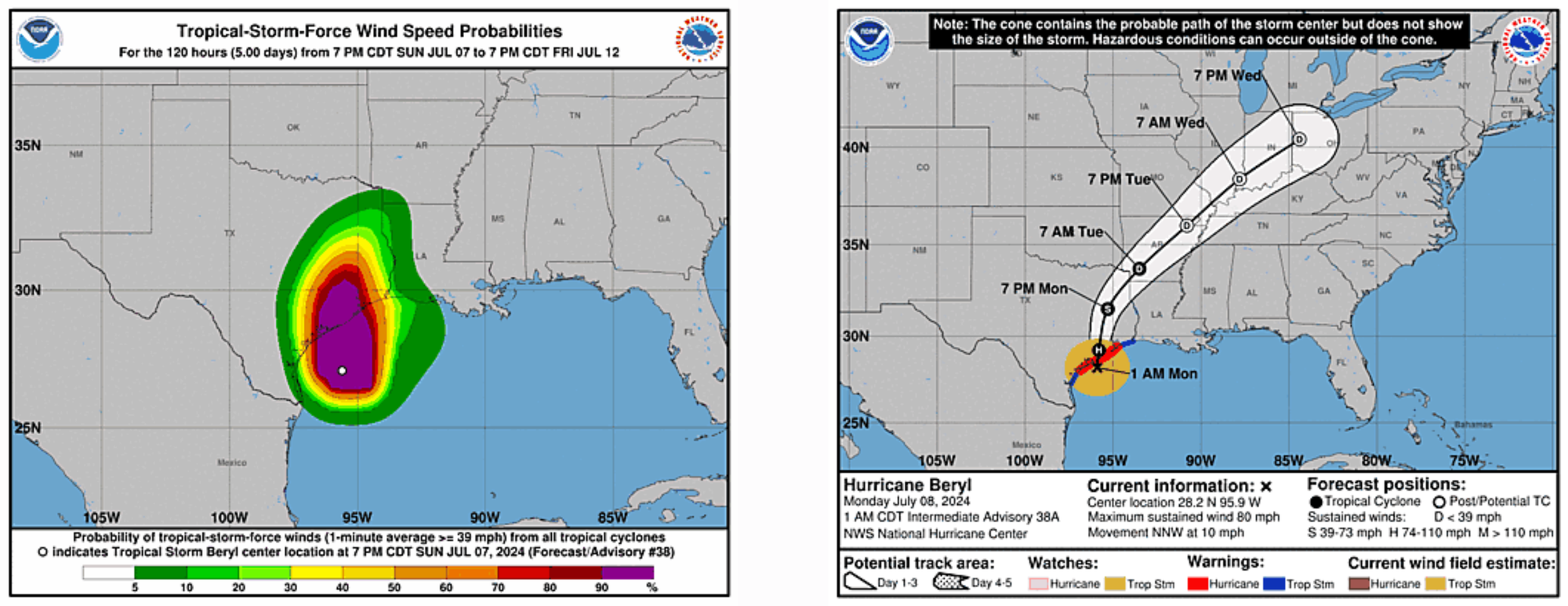 Hurricane Beryl, the first hurricane of the 2024 season, is set to hit South Texas this morning. Forcing the closure of major ports including Corpus Christi, Houston, Galveston, Freeport, and Texas City. Initially hitting Mexico as a Category 2 storm, Beryl has now weakened to a Category 1 hurricane but may strengthen again before making landfall on Monday, says the U.S. National Hurricane Center (NHC).