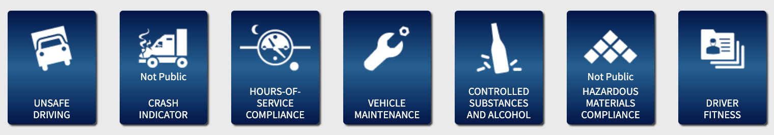 FMCSA tracks carrier safety through Behavior Analysis and Safety Improvement Categories (BASICs). These cover areas such as unsafe driving, hours-of-service compliance, and vehicle maintenance. The raw measures behind these categories are public and can be viewed on FMCSA’s Safety Measurement System (SMS).