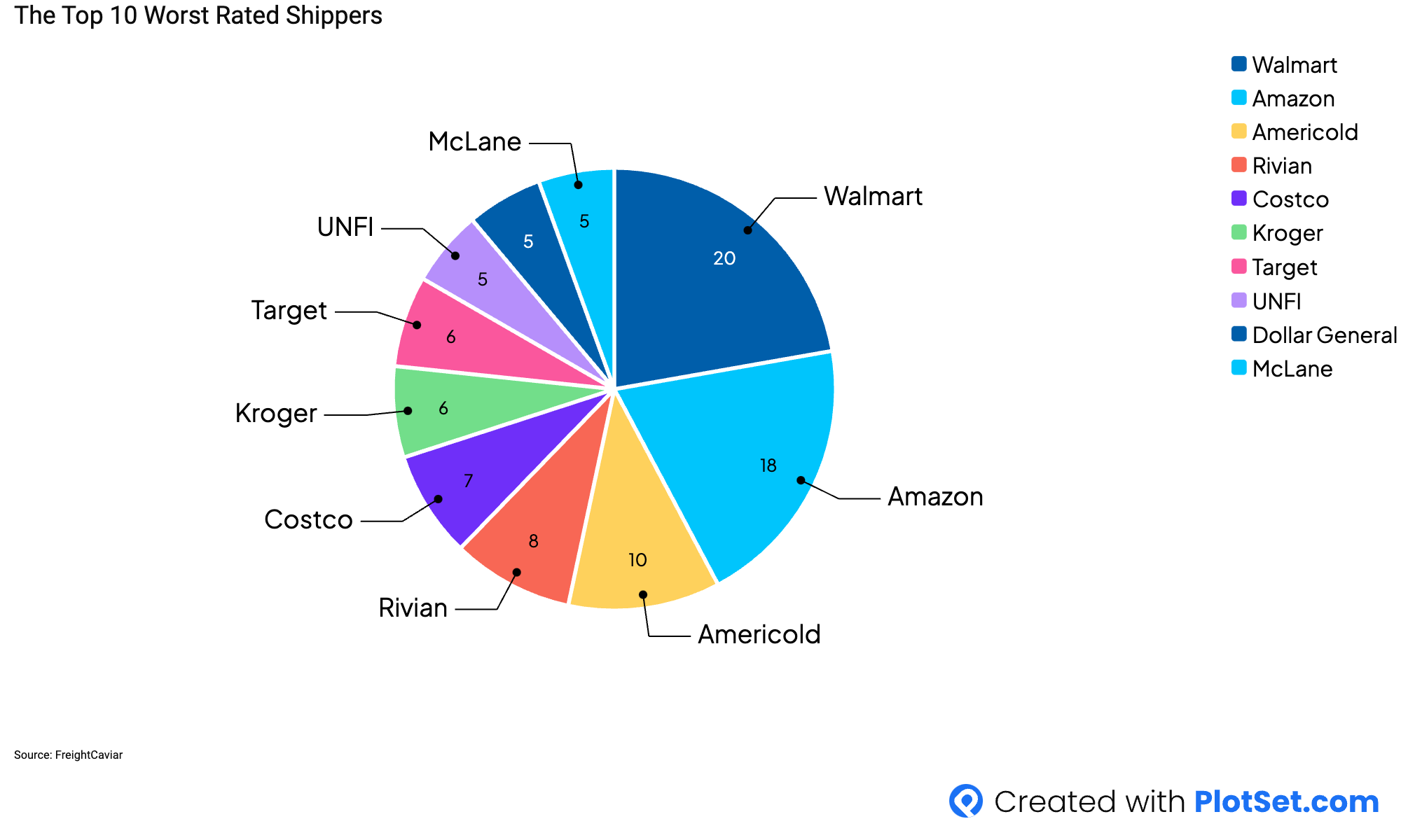 In a recent poll conducted among our Instagram followers, we asked which shippers were their least favorite companies to pick up from or deliver to. With a turnout of 102 votes, Walmart led the pack as the least favored with 20 votes, followed closely by Amazon at 18 votes. Americold wasn't far behind with 10 votes, with the likes of Rivian, Costco, and others trailing in varying degrees.