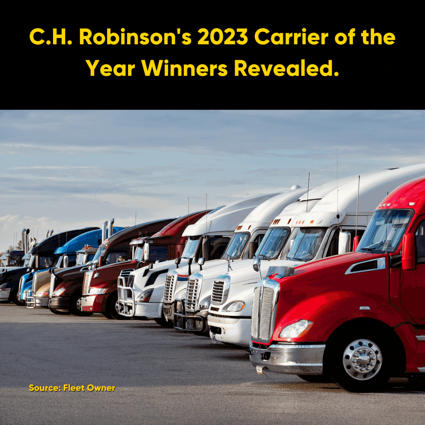 🚛 C.H. Robinson's 2023 Carrier of the Year Winners Revealed. C.H. Robinson celebrated its sixth annual Carrier of the Year awards, honoring 23 outstanding contract carriers selected from its network of 96,000 for their exceptional service, operational excellence, and adoption of transportation technology. This year, for the first time, winners from Canada and Mexico were recognized in new cross-border categories.