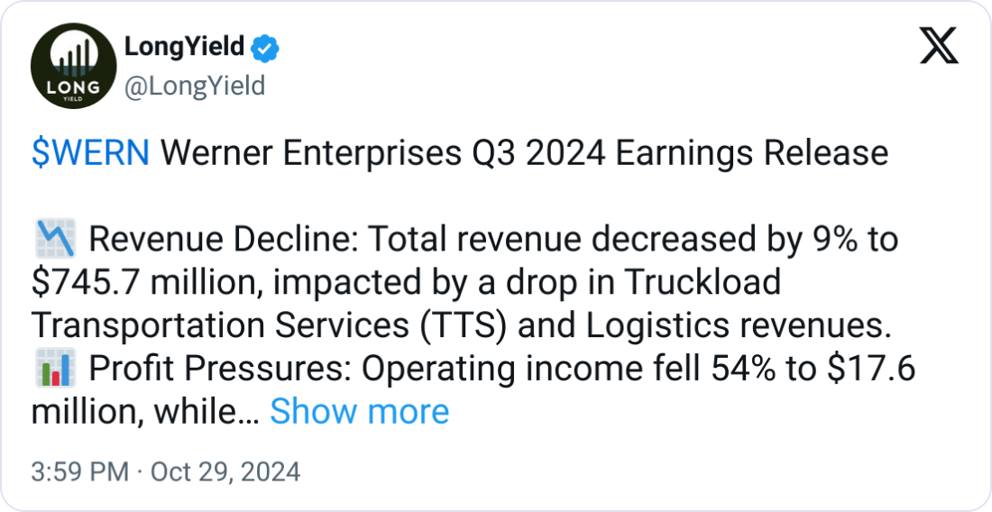 While Werner Enterprises missed some earnings expectations, CEO Derek Leathers provided a cautiously optimistic outlook, particularly for potential rate hikes in 2025.