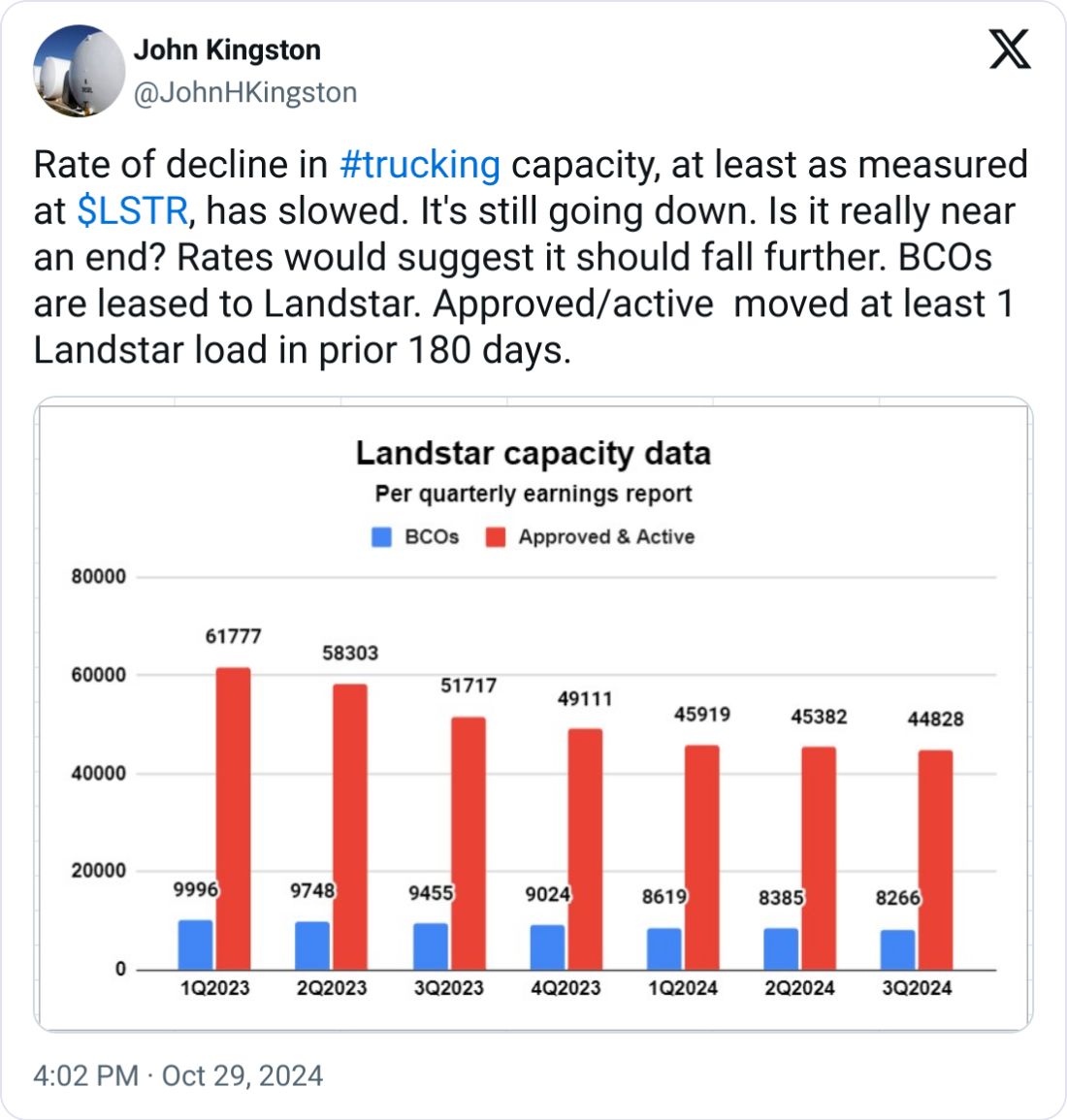 The number of active Business Capacity Owners (BCOs) at Landstar has been steadily declining. (Image source: John Kingston, X)