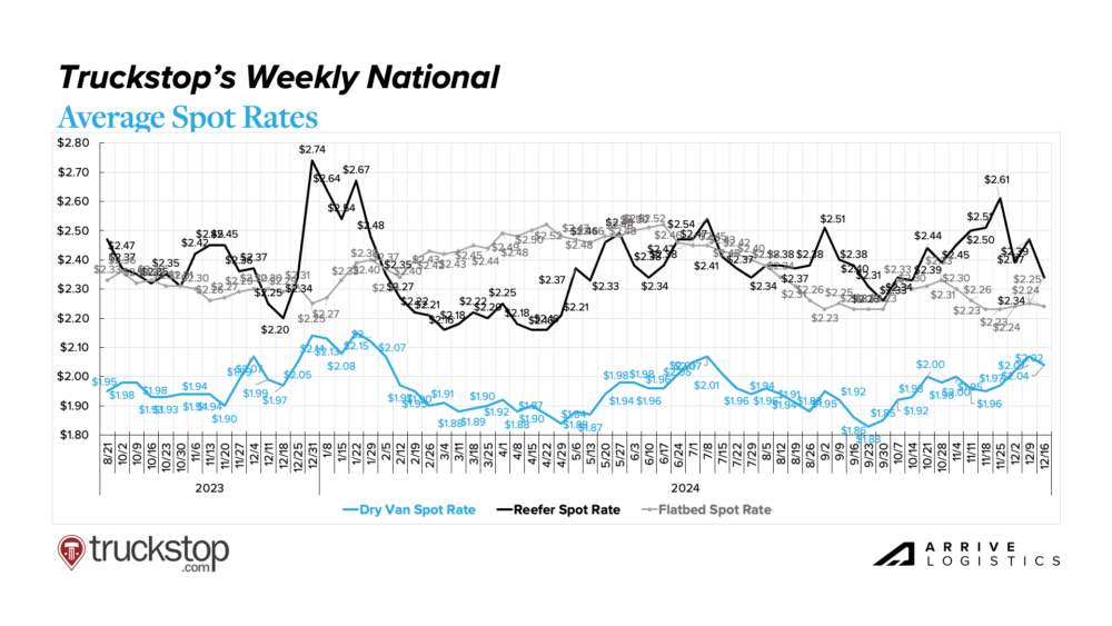 Happy Monday. This is our final Monday-Wednesday-Friday newsletter until January 2nd. Today’s feature dives into Arrive Logistics’ last 2024 freight market update.