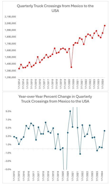 Northbound truck crossings from Mexico to the US smashed records in Q2 2024.
