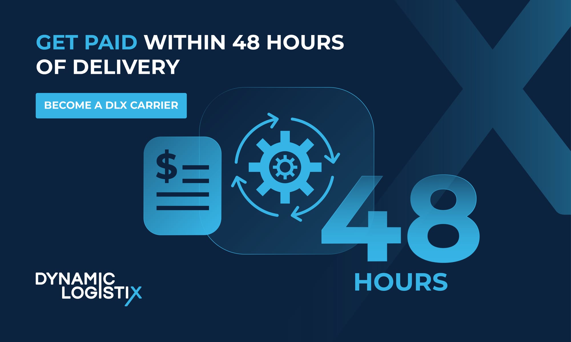Stop chasing down payments from shippers who are hard to get ahold of. With DLX, you don’t have to wait 30-60 days to receive your payment – we’ll process your automated invoice in less than 48 hours after delivery. We value our carriers and understand that faster payment means more flexibility for operational costs like fuel, equipment repairs, and other expenses.