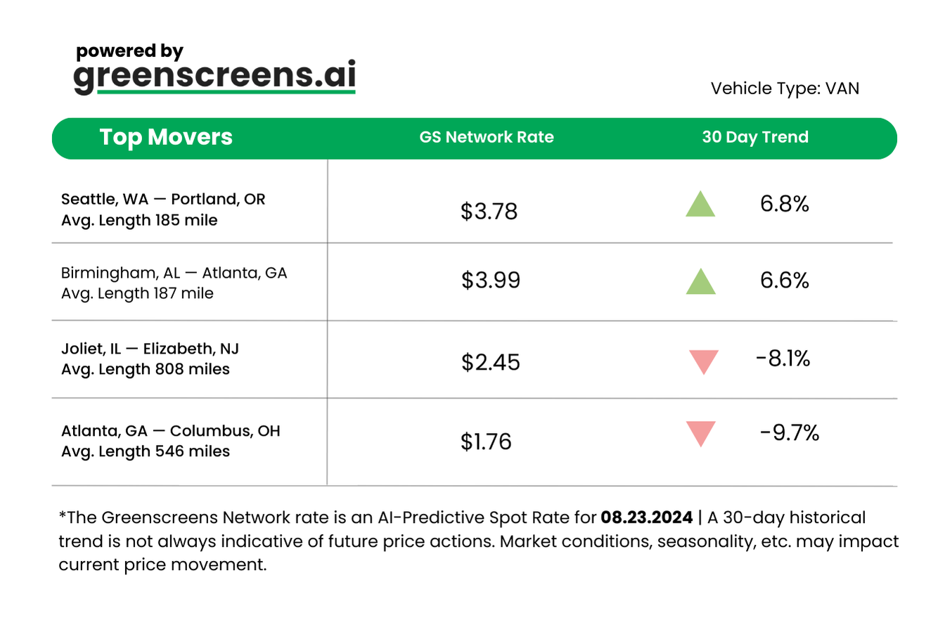 *Greenscreens.ai, forecasts real-time truckload buy prices that are suited to each freight brokerage's purchasing power using AI and machine learning. Its engine takes into account over 130 attributes and data points in each rate forecast.