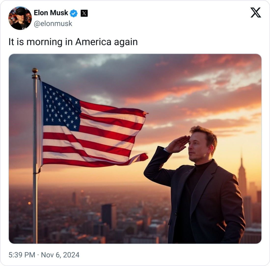 Good morning everyone. I'll be taking over this week for our Tuesday/Thursday feature and focusing on one of my favorite topics: green freight. With Elon Musk at President-Elect Trump's right hand, where does that leave the Tesla Semi and other electric trucks?