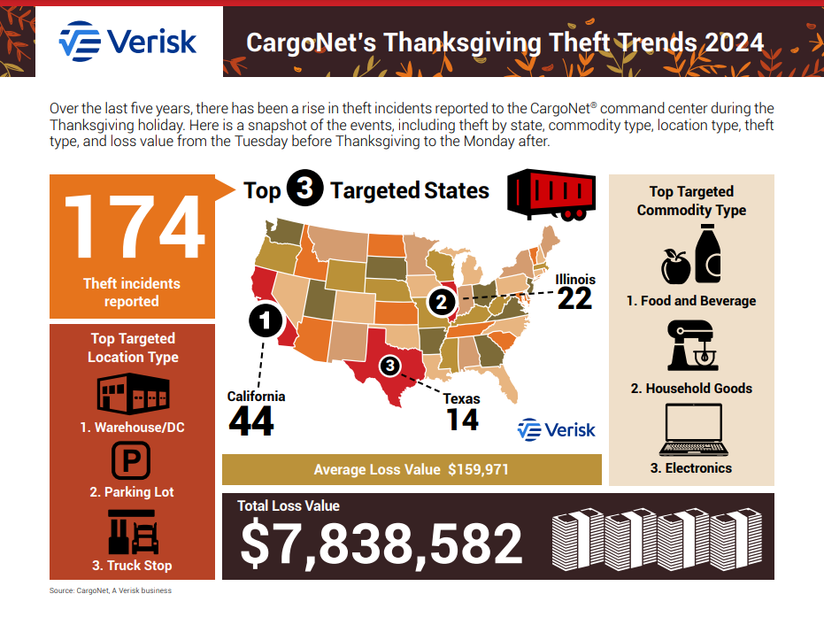 Plus: CargoNet's Thanksgiving theft trends, a robotic system for unloading non-palletized goods lands a $50M investment, trucks stolen in Chicago, and more.