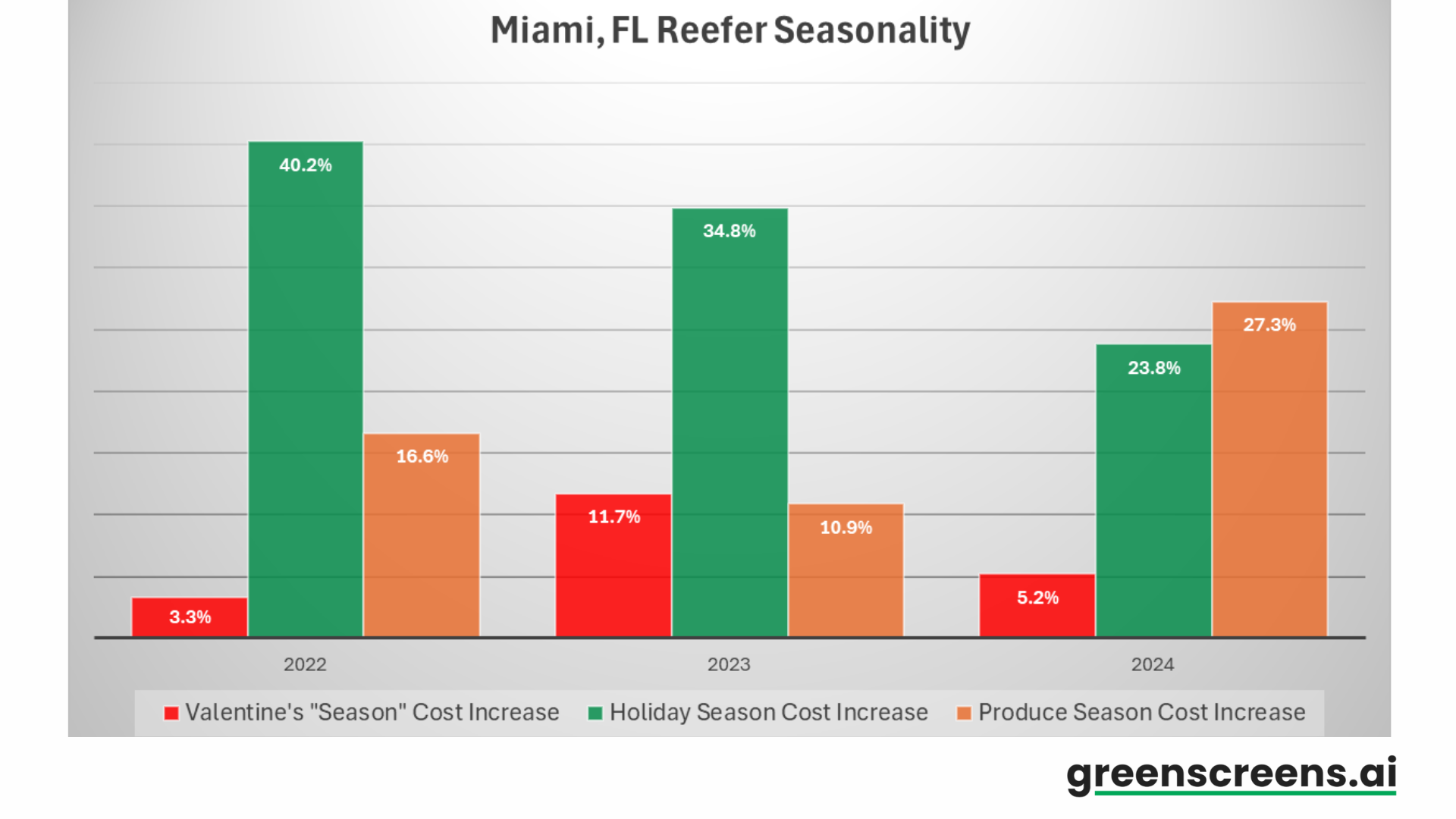 Miamiās outbound reefer rates consistently rise before Valentineās Day, reflecting the seasonal shipping rush.