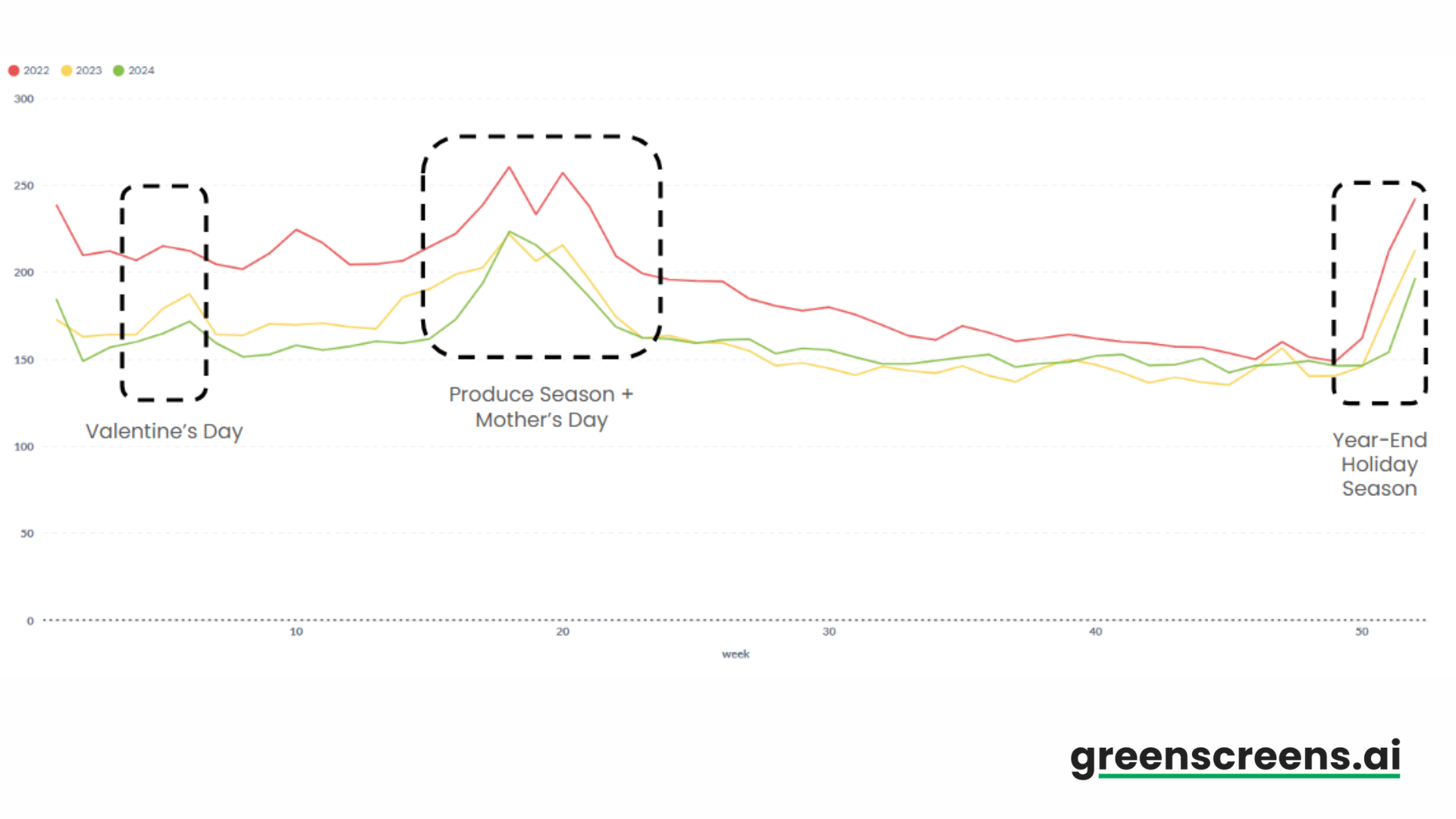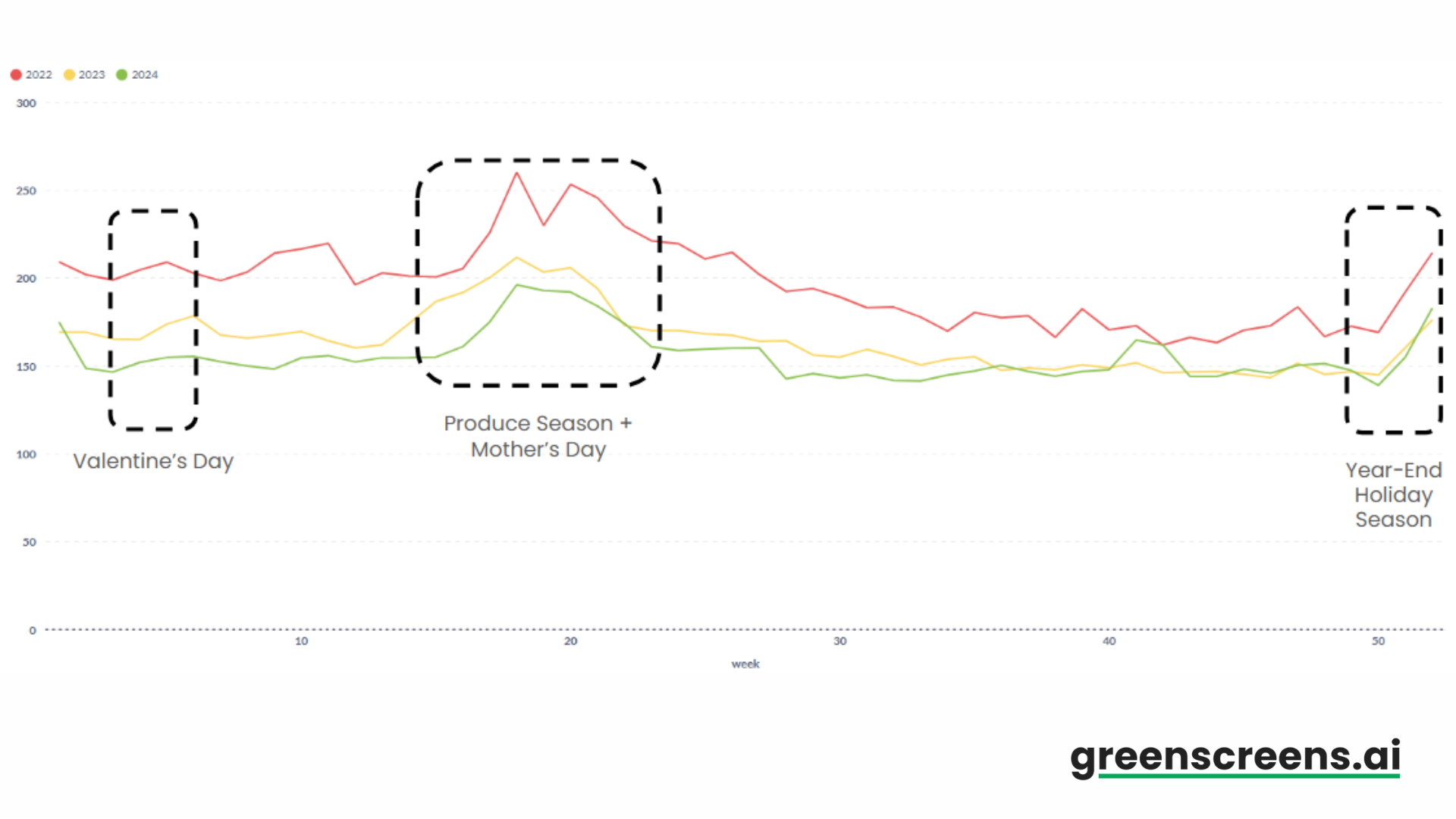 Similarly to Miami, the Valentineās Day āseasonalā increase is much less significant than that associated with the holidays and produce season.