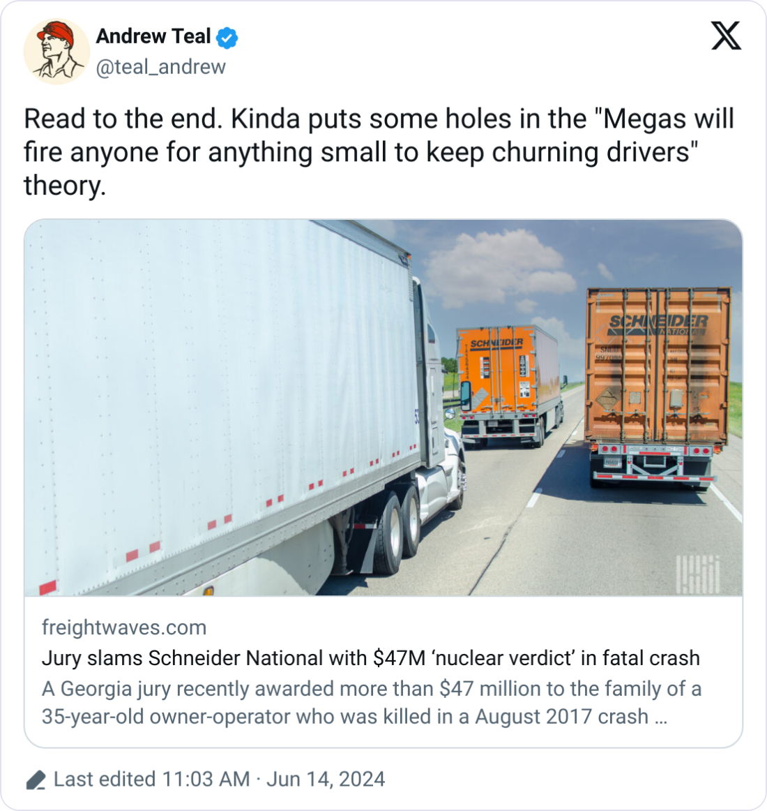 - The $47 million verdict against Schneider and Joachim was awarded by a Georgia jury on June 7, 2024, in a wrongful death lawsuit filed by the family of Jarvis Nance Sr., an owner-operator killed in a 2017 crash.