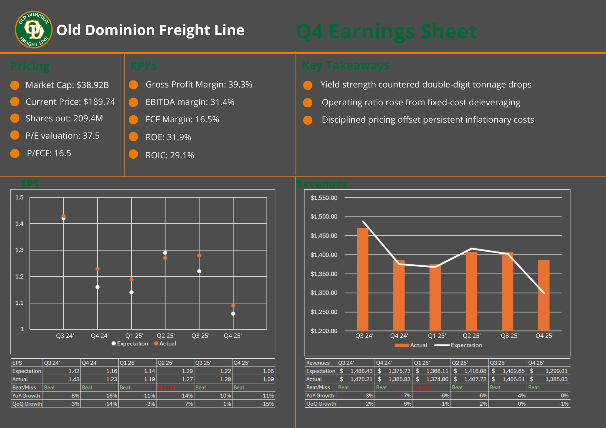 Old Dominion expects a normal seasonal rebound in Q2, which could bring revenue and margins close to flat year over year if demand continues to firm. The carrier is holding excess capacity and cutting capex, positioning itself to scale quickly if volumes return.