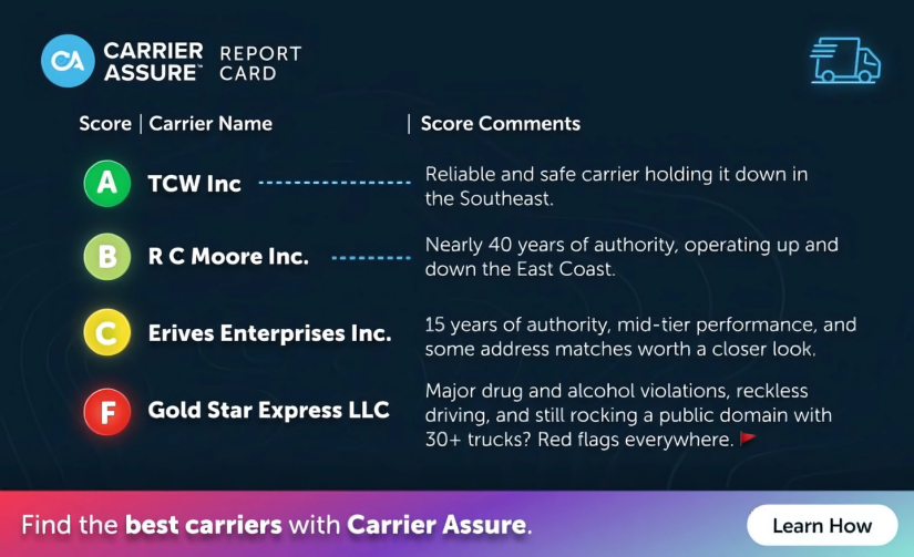 Carrier Assure is a platform that helps brokers and shippers assess and track carrier performance, enabling them to avoid fraudulent and unreliable carriers while streamlining the carrier selection process.