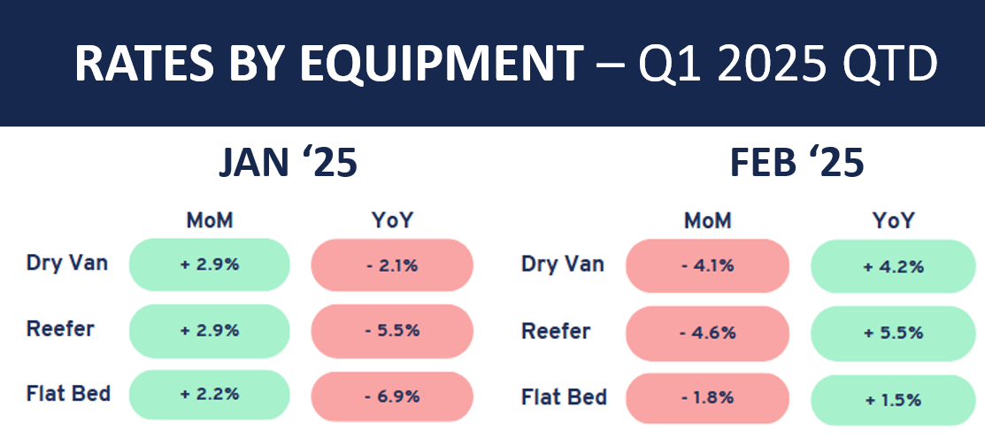 Rates Simmer Down: According to OTR Solutions, rates cooled from their January highs, a predictable seasonal shift following the storm-driven volatility of early Q1.