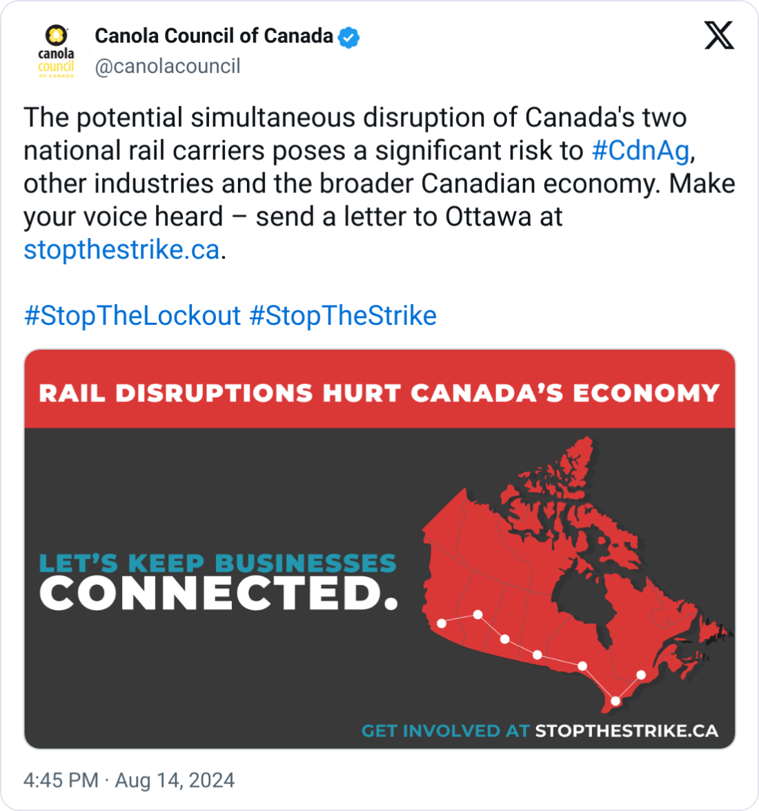 "Now that a strike notice has been declared, some of our Canadian export customers are starting to ship time-sensitive goods to the ports by truck to avoid containers being stuck at rail terminals during a strike," – C.H. Robinson's Canada VP Scott Shannon, via Reuters.