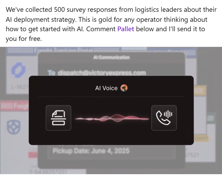 🏗️ Pallet Expands Reach. Pallet CEO Sushanth Raman announced the company’s first national TV commercial, three new customers in a day, and CoPallet’s Deep Reasoning AI, designed to manage complex, multi-step logistics workflows.