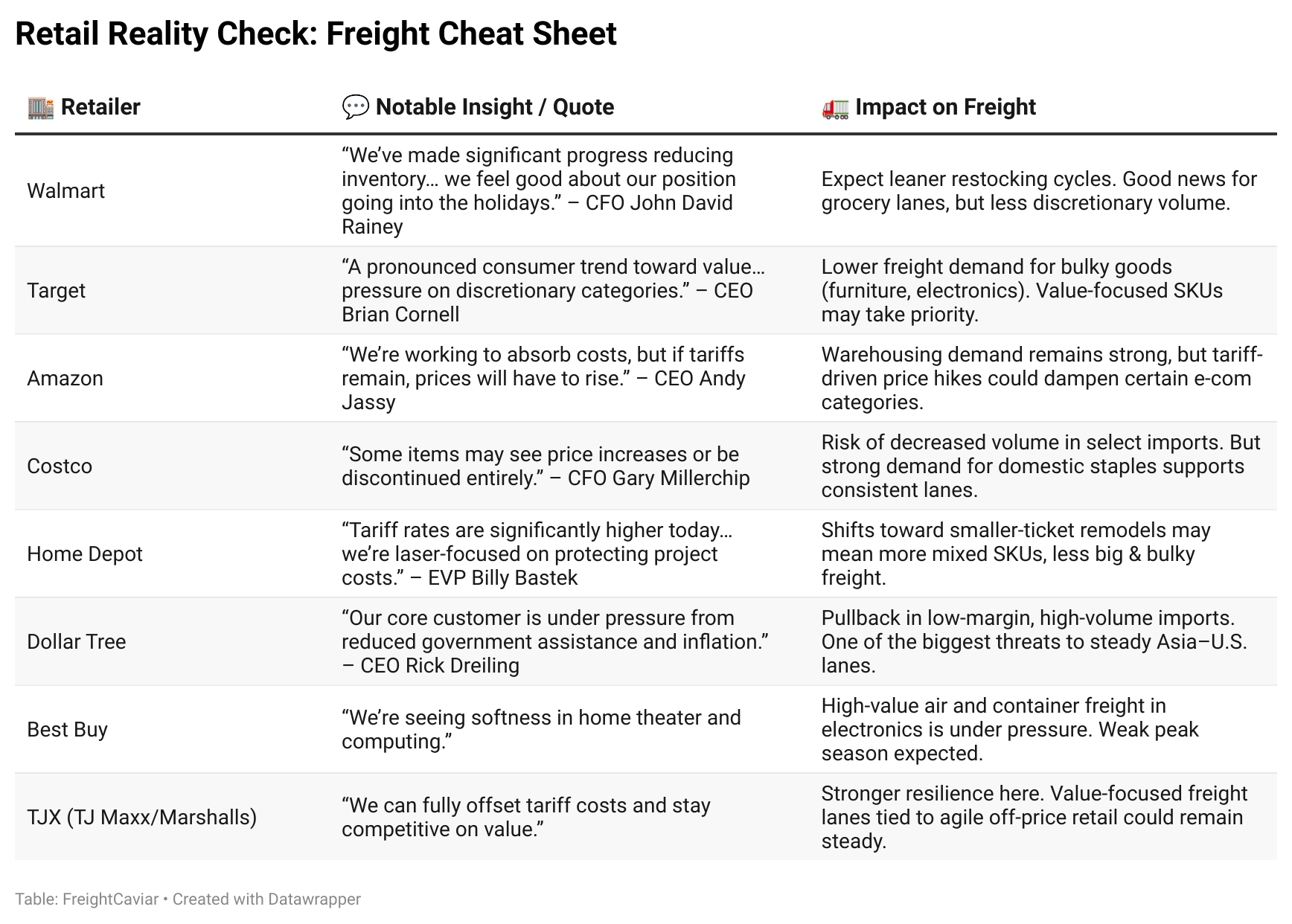 The smoke has cleared from Q2 earnings season. Retailers are warning: consumer demand is cooling, inventories are being surgically trimmed, and freight is directly in the crosshairs. Here's what the major players had to say.