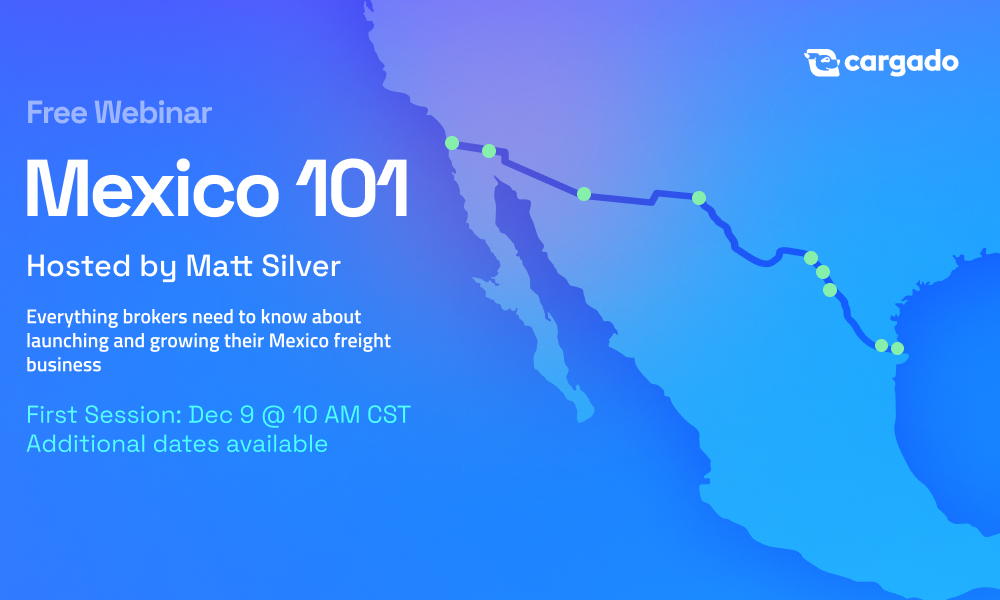Join Matt Silver, Co-founder and CEO of Cargado, for a practical session on building a profitable Mexico freight business. Whether you're experienced in cross-border or just getting started, this is for you.