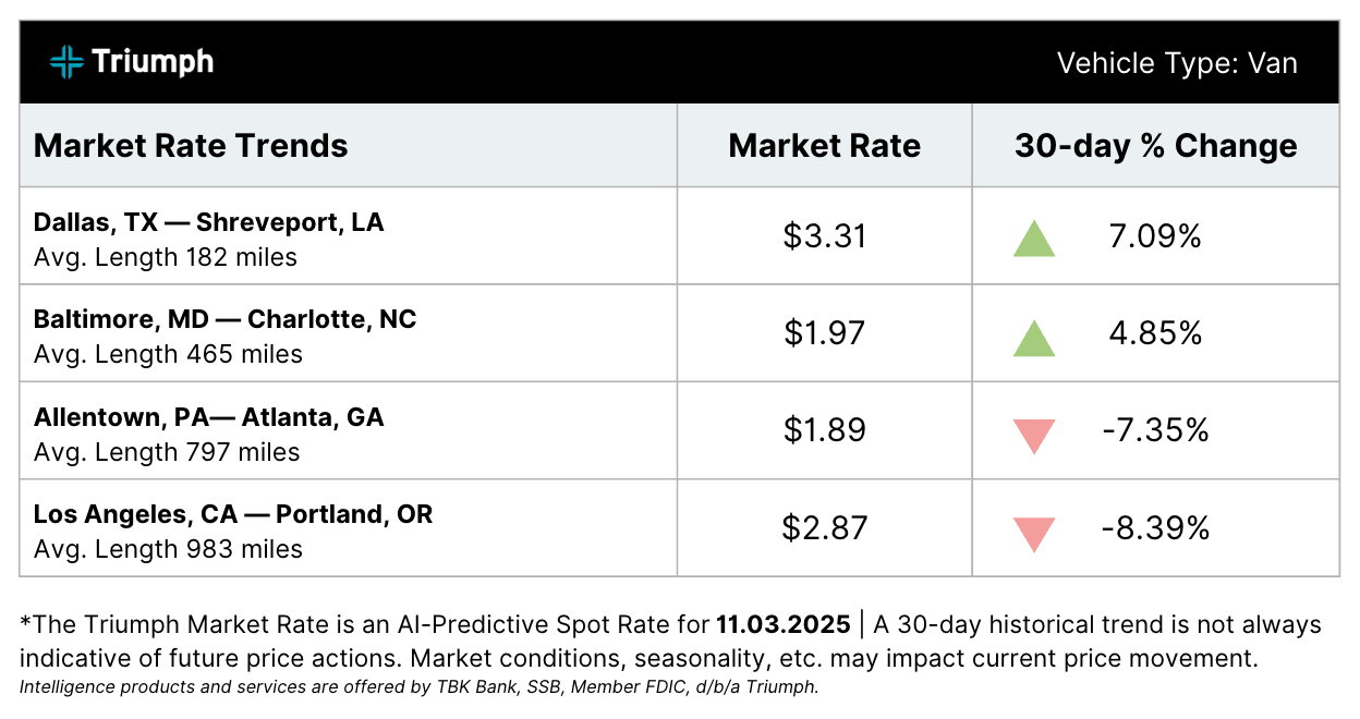 📉 U.S. Bank Sees Freight Contraction as Rates Edge Higher. The U.S. truck freight market shrank again in Q3 2025, with shipments down 2.9% from Q2 and 10.7% year-over-year, according to the U.S. Bank Freight Payment Index. Despite falling volumes, shipper spending rose 2%, signaling that capacity is tightening as smaller fleets exit. U.S. Bank’s Bobby Holland said, “Shippers paid more to move less freight,” as rates rose beyond fuel-driven costs. Regionally, the Southwest saw the steepest decline, while the Northeast outperformed with 6.3% annual shipment growth. ATA’s Bob Costello noted the sector remains under strain from weaker manufacturing and consumer demand despite earlier signs of recovery.